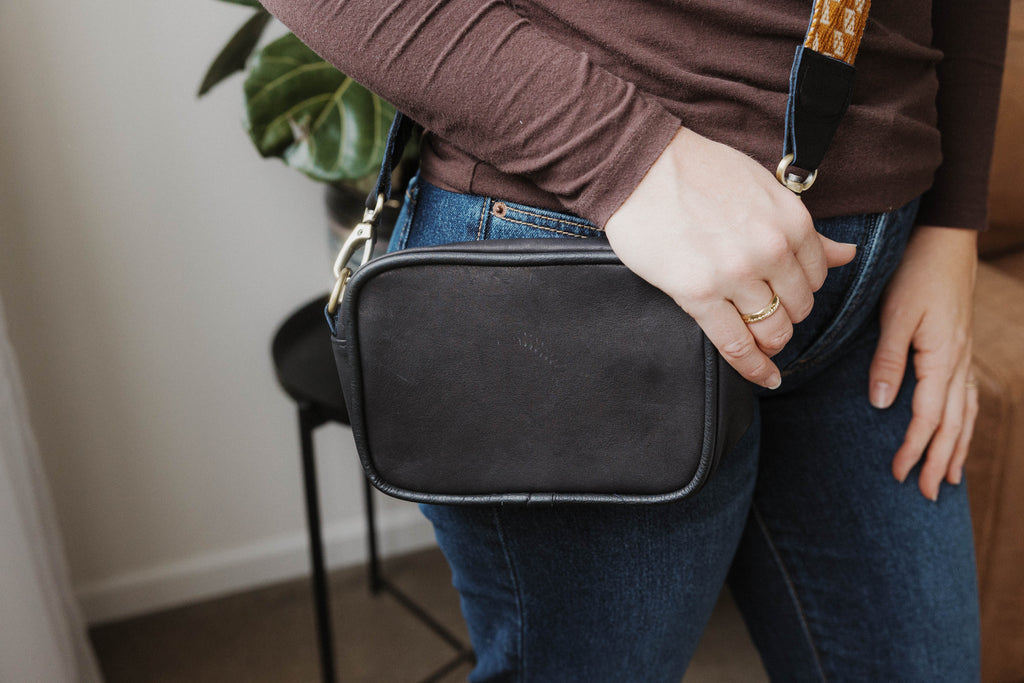 Discover the perfect blend of sophistication and practicality with Willow's Mini Leather Crossbody Bag. Featuring a full-leather body complemented by a bold, handwoven shoulder strap, this mini crossbody bag is ideally sized to carry light essentials such as your wallet, phone, and hand sanitizer.