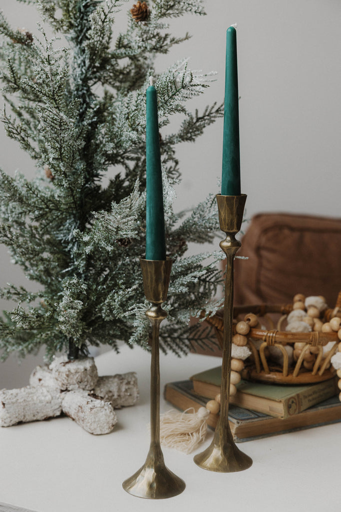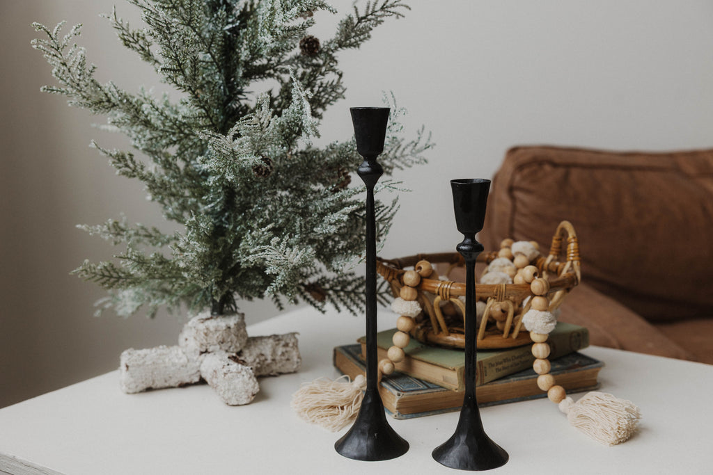 Hand-forged by master blacksmiths in India, these iron candle holders represent generations of skill united with timeless modern style. Each piece requires hours of skilled craftsmanship that creates a texture unique to true hand-forged ironwork. Unlike mass-produced alternatives that are cast, these taper candle holders have a weight and finish that is distinctly premium. With a sturdy weighted base, each is topple tested to ensure safety in addition to elegance.