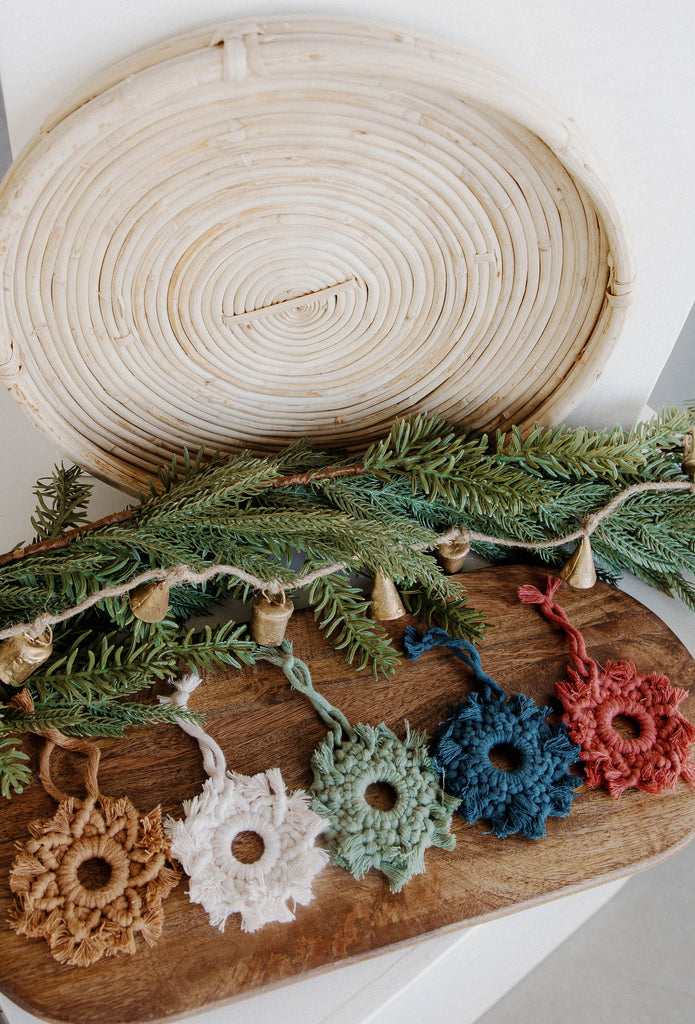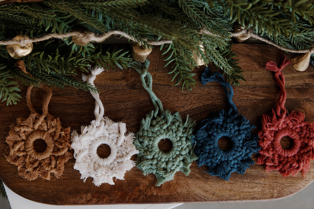How pretty are these!? Macrame snowflakes all done by hand by artisans in Haiti. Choose from an assortment of trendy, beautiful colors.