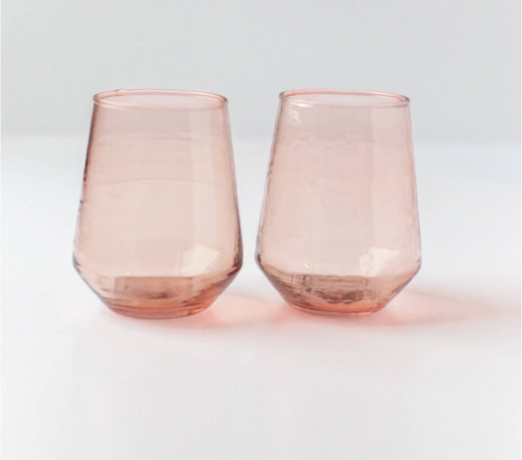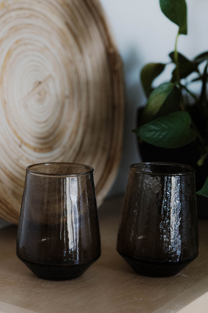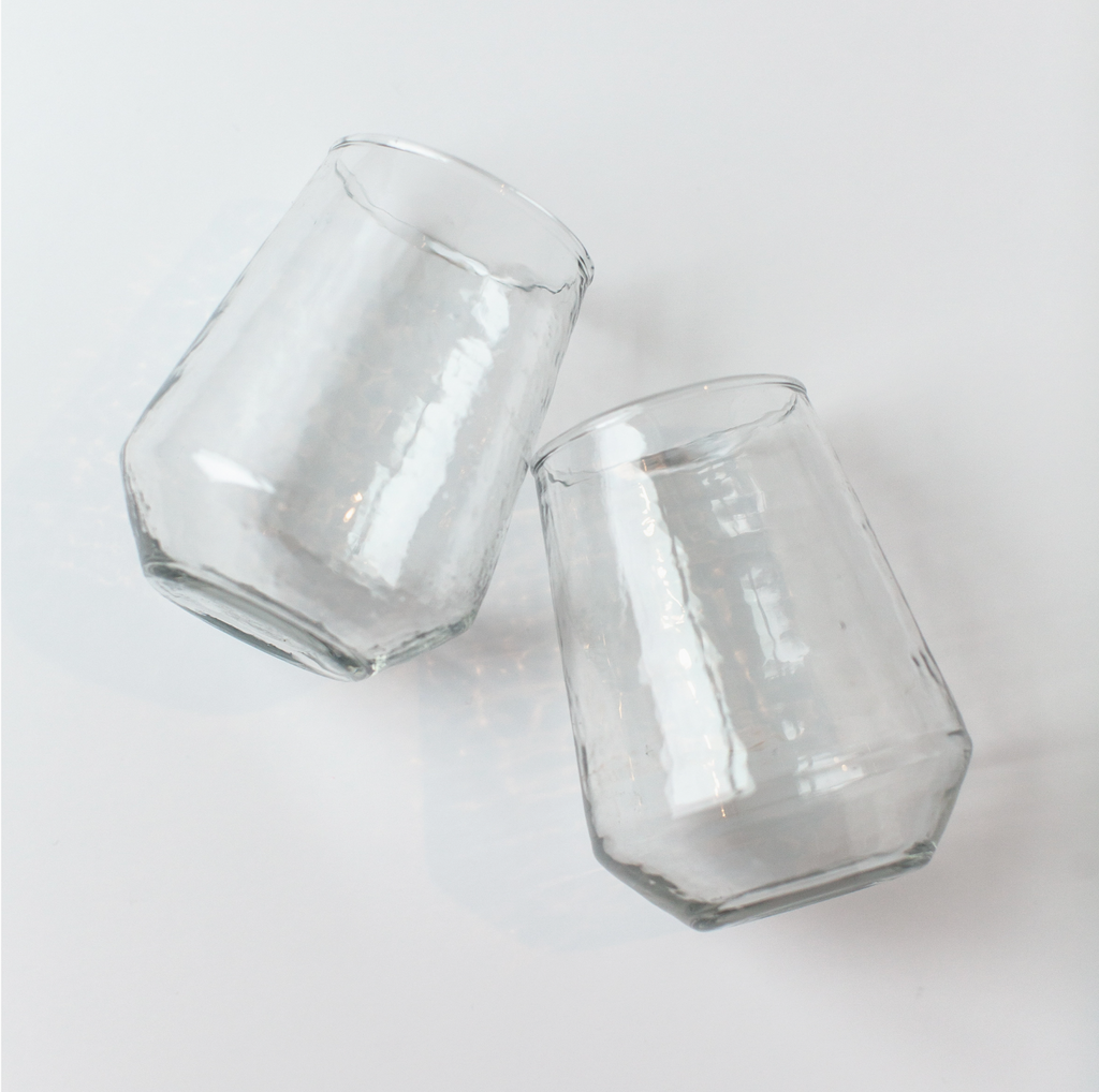 Sip in style with these handblown hammered glass tumblers. Crafted with care at a woman-owned business, each is made from 100% recycled glass and meticulously hammered by hand for a truly unique finish. Master craftsmanship, beautiful texture and organic lines make these perfect for everyday use or at your next dinner party.