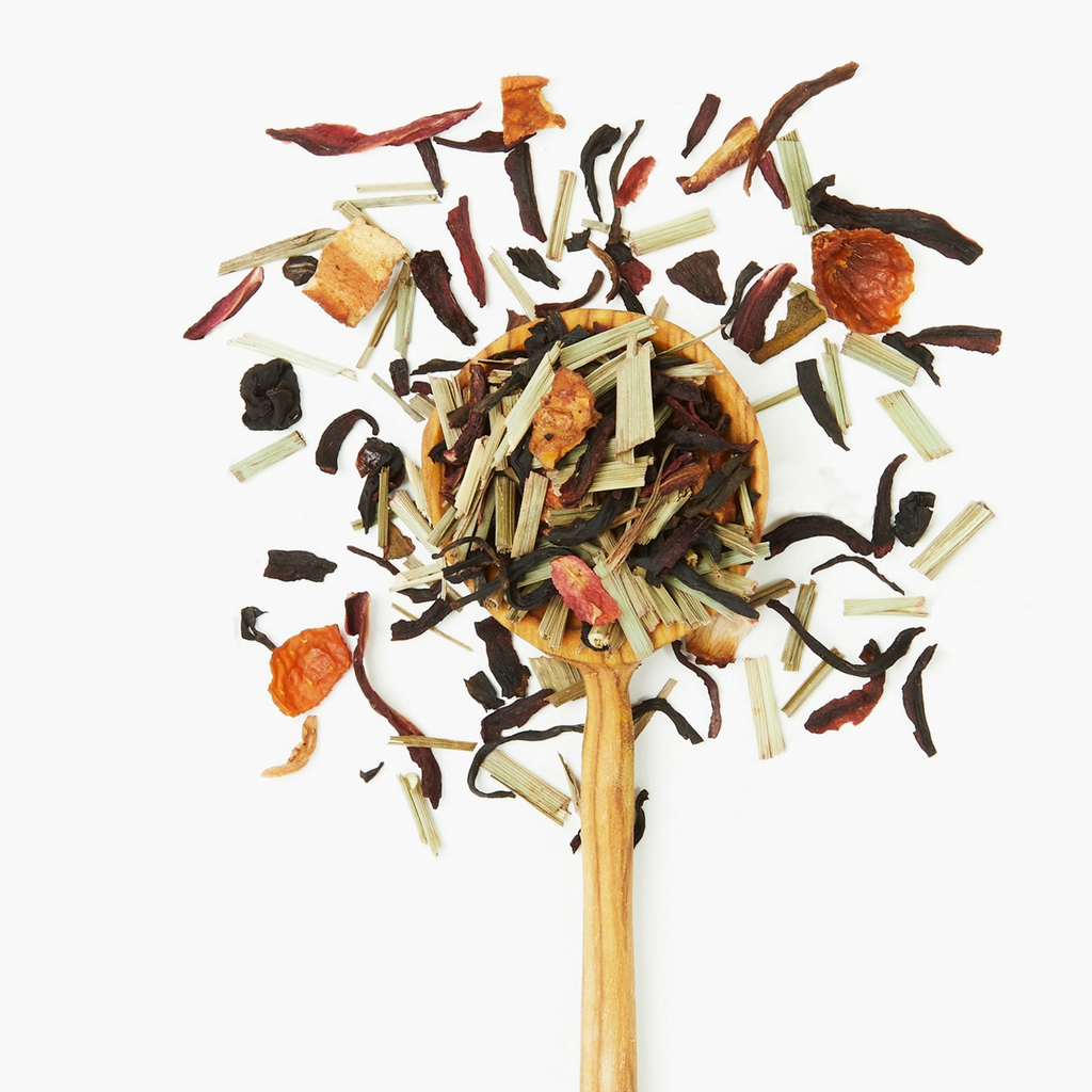 HAND-PICKED TEA from Kenya: Organically grown, free of chemicals and pesticides. Non-GMO. Proud member of Fair Trade Federation. 100% NATURAL INGREDIENTS: Organic Lemongrass, Kenyan Purple Tea, Hibiscus, Apple Pieces, Rosehips, Natural Passion Fruit Flavour (Gluten/Sugar-Free and Very Low Caffeine)