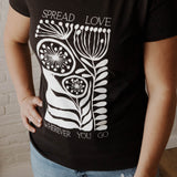 We love this design with a reminder to "spread love wherever you go" on charcoal triblend material.