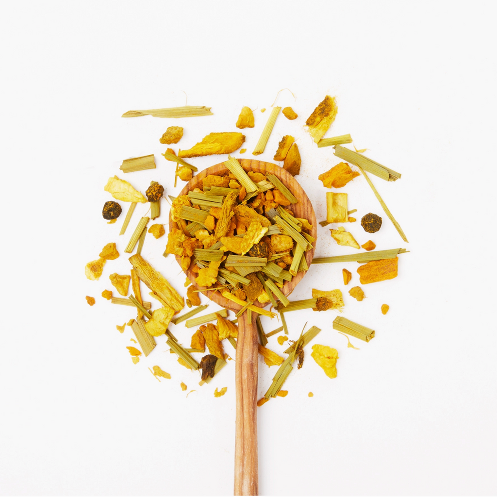 HAND-PICKED TEA from Kenya: Organically grown, free of chemicals and pesticides. Non-GMO. Proud member of Fair Trade Federation. 100% NATURAL INGREDIENTS: Turmeric Root, Ginger Root, Organic Lemongrass, Licorice Root, Orange Peel, Black Peppercorn, Essential Lemon Oil (Gluten/Sugar-Free and Caffeine-Free)