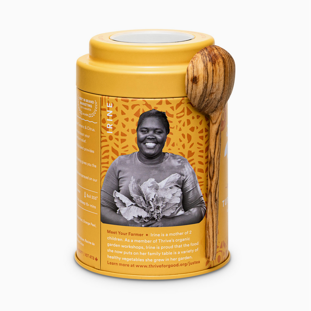Every purchase directly supports small-scale Kenyan tea farmers. Justly Made Tea. Attached to each tin is a handcrafted, olive-wood tea spoon! Creating sustainable employment for Kenyan artisans. Each tin is recyclable or reusable and offers up to 80 cups of loose leaf tea.